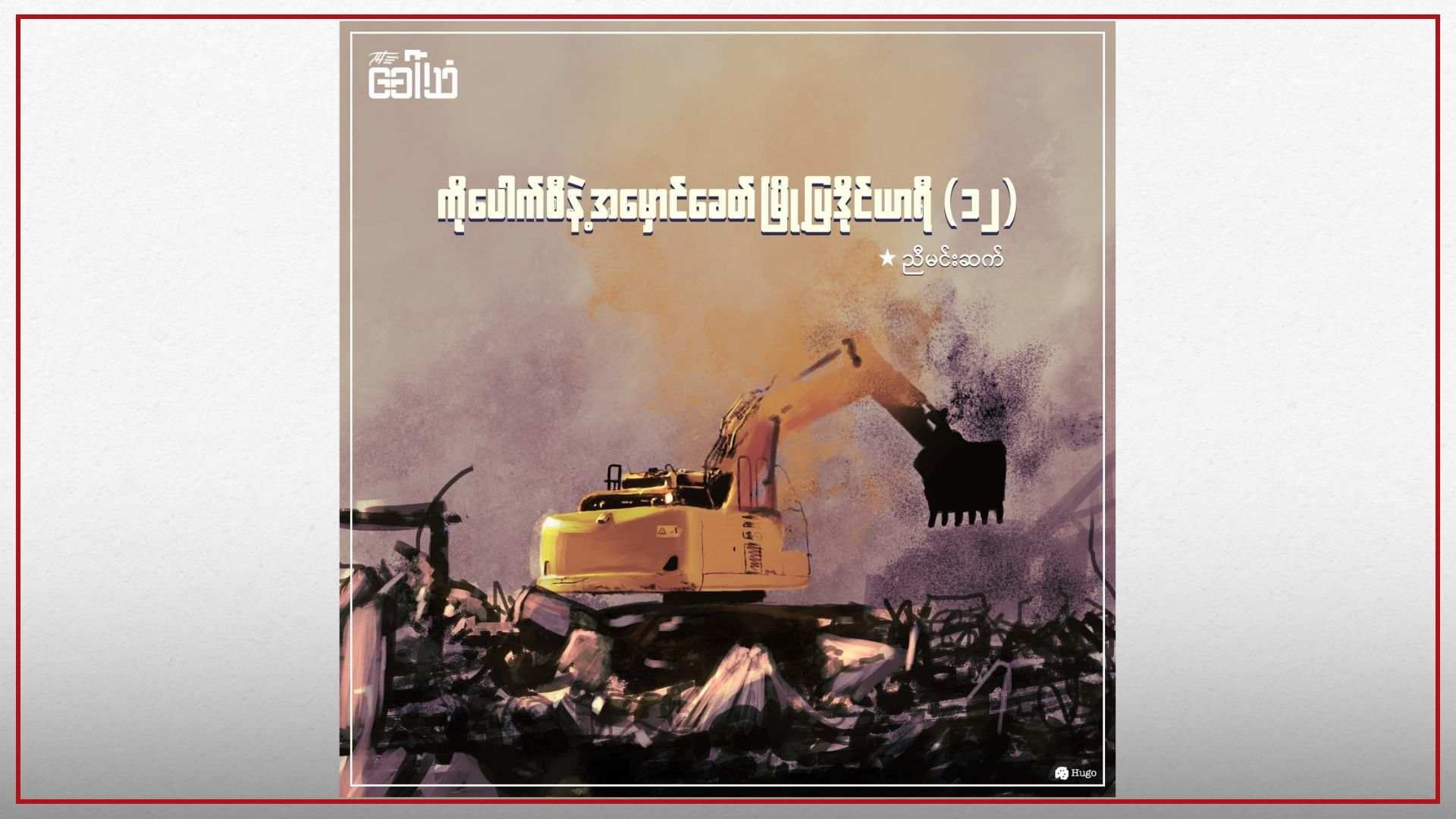 ဒီအခြေအနေတွေ အဆုံးသတ် အပြီးပြတ်ဖို့ ဆိုတာကလည်း ဒီအာဏာရှင်စနစ်ကြီးနဲ့ အာဏာရှင်တွေကို အမြစ် ဖြတ်နိုင်မှပဲ ဖြစ်မှာလို့ တွေးရင်း မမိချိုဆီ အကြည့်ရောက်ဖြစ်တော့ အပျက်အစီးပုံကြားထဲ တပိုင်းတစ ထိုးထွက် နေတဲ့ သူ့ဆိုင် ဆိုင်းဘုတ်ကလေးကို ဆွဲထုတ်ပြီး ကျစ်ကျစ်ပါအောင် ဖက်နေတာကို ကိုပေါက်စီ တွေ့လိုက်ရတယ်။