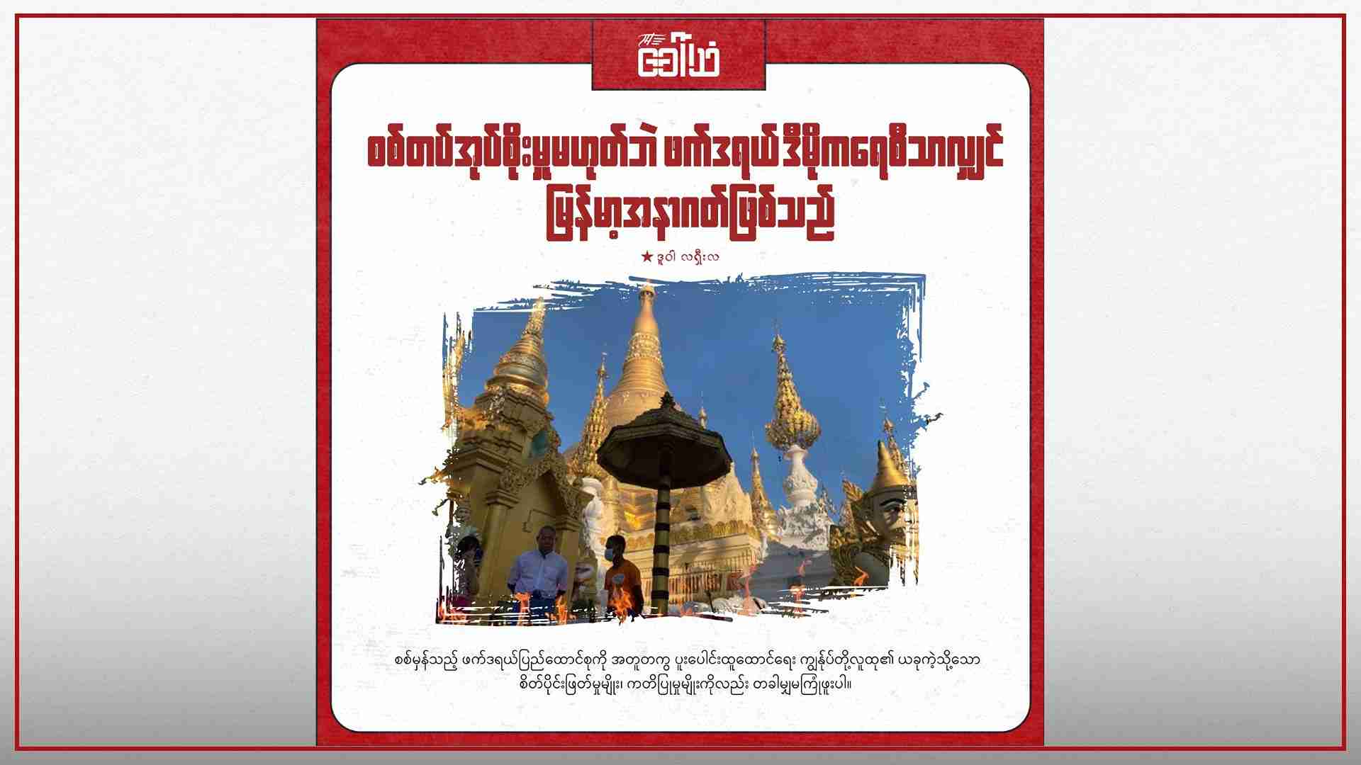၂၀၂၁ ခုနစ် ဖေဖော်ဝါရီလ ၁ ရက်နေ့တွင် မြန်မာစစ်တပ် အာဏာသိမ်းရန် ကြိုးပမ်းမှုသည် ရွေးကောက်ခံအစိုးရကို ဖယ်ရှားလိုက်မှုဖြစ်ပြီး ဆယ်စုနှစ်တစုကြာ ဒီမိုကရေစီ ပြုပြင်ပြောင်းလဲမှုကို နိဂုံးချုပ်စေကာ စစ်အာဏာရှင်စနစ်ကို ပြန်လည်ထူထောင်လိုက်မှုဖြစ်သည်။ ကျွန်ုပ်တို့တိုင်းပြည်သည် အာဏာသိမ်းမှုပေါင်းများစွာနှင့် စစ်အုပ်ချုပ်ရေးကာလများကို ကြုံတွေ့ခဲ့ရပြီးဖြစ်သည်။ လက်ရှိအချိန်တွင် ပြည်သူများက “လက်မခံနိုင်ဘူး” ဟု ပြောဆိုလိုက်ပြီဖြစ်သည်။ စစ်အုပ်စုကို ပြည်တွင်းကရော၊ ပြည်ပကပါ လက်ခံခြင်းမရှိပေ။ အာဏာသိမ်းလိုက်ပြီး ၂၁ လတာကာလထဲရောက်သည်အထိ ဗိုလ်ချုပ်မှူးကြီးမင်းအောင်လှိုင် ဦးဆောင်သည့် ကိုယ့်ဘာသာကိုယ် ခန့်အပ်ထားသည့် နိုင်ငံတော်စီမံအုပ်ချုပ်ရေးကာင်စီ၏ ထိန်းချုပ်မှုကို မြန်မာပြည်သူများက အံ့သြသင့်ဖွယ် စိတ်ပိုင်းဖြတ်မှု၊ အထူးထူးသော စွန့်လွှတ်မှုများဖြင့် ခုခံတွန်းလှန်လျက်ရှိသည်။ စစ်အုပ်ချုပ်ရေးအစား ပြည်သူများက ဖက်ဒရယ် ဒီမိုကရေစီကို မြန်မာ့အနာဂတ်အဖြစ် လက်ခံလျက်ရှိပြီး အရပ်သားအစိုးရနှင့် အရပ်ဘက် ထိန်းချုပ်ထားသည့် စစ်တပ်ကိုသာ လိုလားလျက်ရှိသည်။
