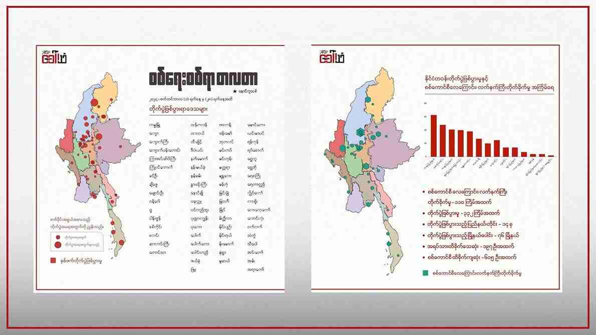 ● ဖော်ပြပါ အချက်အလက်များသည် သတင်းမီဒီယာ (၁၀) ခုမှ သတင်းများကို အခြေခံ ကောက်ယူ ထားခြင်းဖြစ်သည်။ တိုက်ပွဲနှင့် ထိခိုက်ကျဆုံး အရေအတွက်မှာ ဖော်ပြထားသည်ထက် ပိုမို များပြားနိုင် သည်။