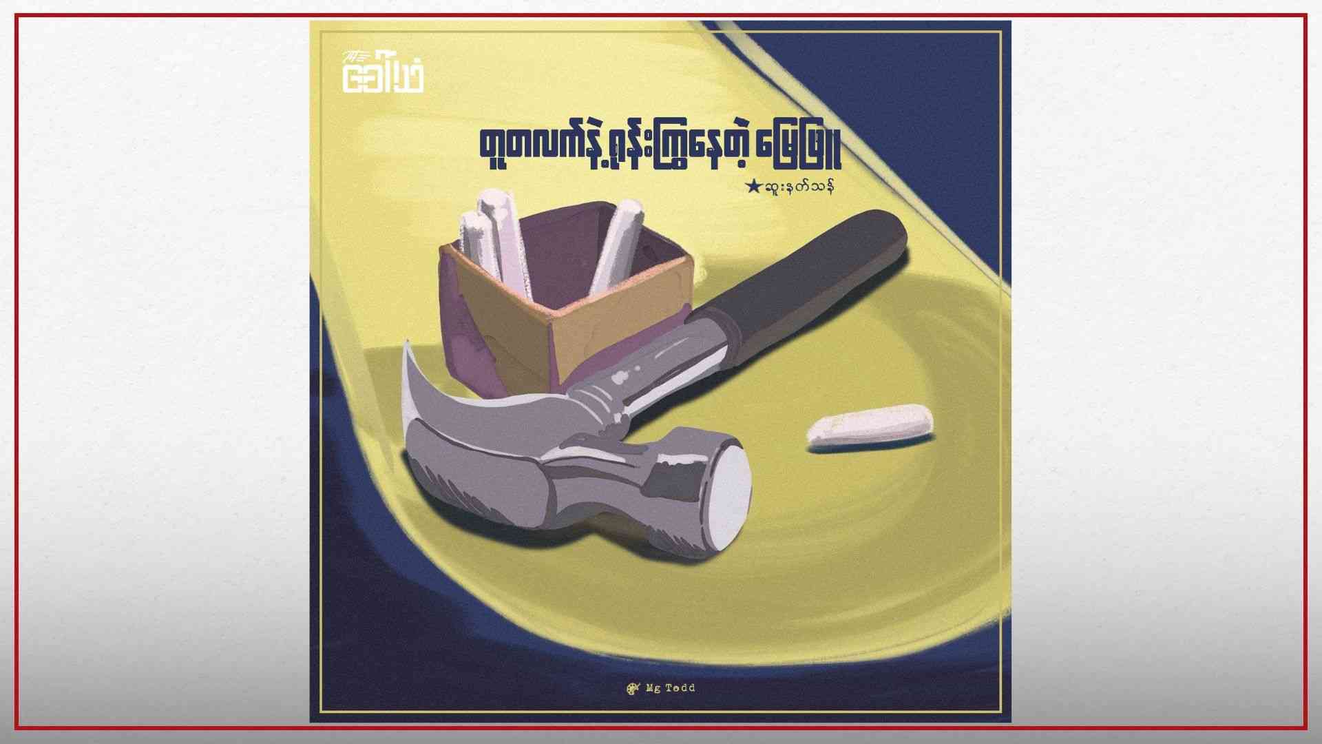တဒုန်းဒုန်း တူ ထုနှက်သံတွေနဲ့ ဆောက်လုပ်ရေး လုပ်ငန်းခွင်က ဘဝတခုဟာ အခြားဘဝတခုကို ဈာန်ဝင်စားခွင့် ရခဲ့ဖူးတယ်။ အစကတော့ ကျနော်လည်း တူတချောင်းနဲ့ ဘဝကို ဖြတ်သန်းရလိမ့်မယ် မတွေးဖူးပါဘူး။ လူလတ်ပိုင်း လေးဆယ်ကျော်ဘဝမှာ ခေတ်ရဲ့ ဂငယ်ကွေ့ အချိုးအကွေ့တခုကြောင့်ပဲ ကျနော်ဟာ မြေဖြူကို ပစ်ချ၊ တူတလက် ကျနော့်လက်ထဲ ရောက်လာရတာပဲ။