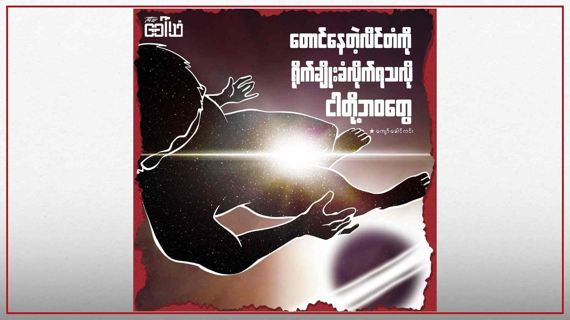 ပုံမှန်ချိန်ဆို ဘီယာဆိုင်မှာ အနာဂတ်အကြောင်း၊ ရှေ့ရေးအကြောင်း အာပေါင်အာရင်းသန်သန်ပြောလေ့ရှိတဲ့ငါတို့ဟာ အခုတော့ အနာဂတ် ဆိုတာဘာလဲမေးယူရတော့မှာ။ ဒီအချိန်မှာ အဲ့လိုထပြောတဲ့ကောင်တွေကိုလဲ သောက်ခွက်ရိုက်ချင်က ပေါ့။ သီချင်းတပုဒ်၊ ရုပ်ရှင်တကားကြောင့်၊ အသဲကွဲတာကြောင့် ငါတို့ကျလေ့ကျထရှိတဲ့ မျက်ရည်တွေလို ဒါကြီးပြီးရင် ကျနိုင်ဦးပါ့မလား။ ငါတော့ ရှိုက်ကြီးတငင်ငိုချင်တာ၊ ငါတော့ စစ်ခွေးတွေစောက်ခွက်ထိုးချင်တာ၊ ငါက အသေခံဗုံးခွဲချင်တာ၊ ငါက လက်နက်ကိုင်ဖို့ တောခိုချင်တာ၊ ငါကနိုင်ငံခြားမှာ ကျောင်းသွားတက်ချင်တာ၊