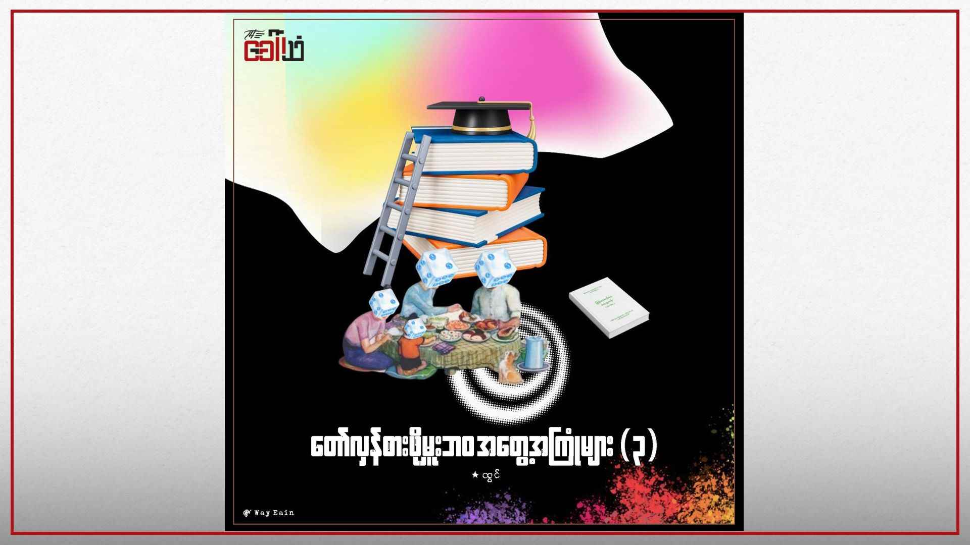 မမစပ်စုက ကောင်တယောက်ကို လာရှာတာ။ သူ့ညီမလေးက ပုစ္ဆာတပုဒ်ကို မတွက်တတ်သာကြောင့် အဖြေရှာပေးဖို့ အကူအညီတောင်းချင်လို့ပါတဲ့။ အဲ့အချိန် ရှာတဲ့ ကောင်ကမရှိ။ အပြင်ခဏသွားနေသည်။ သူ့ညီမလေးက သုံးတန်း။ သုံးတန်းပုစ္ဆာလောက်ကို အီကိုနှင့် ဘွဲ့ရထားသူဖြစ်သော ကျွန်ုပ်က ဖြေရှင်းပေးနိုင်ပါသည်။ သို့ပါသော်လည်း ကျွန်ုပ်ကို အကူအညီတောင်းခြင်း မဟုတ်သဖြင့် ကျုပ်ဖြေရှင်းပေးမယ်ဟု မပြောဖြစ်။ ကျွန်ုပ်က ဘွဲ့ရတယောက်ဆိုသည်ကို မမစပ်စု မသိလို့များလား။ ရှိပါတော့လေ။ ကျွန်ုပ်ကလည်း လူတကာကို ငါက ဘွဲ့ရပါဟု လုံးဝပြောမည်မဟုတ်။ အကြားအာရုံ မသန်စွမ်းသော ကျွန်ုပ်ကို ဘယ်သူကမှ ဘွဲ့ရတယောက်ဖြစ်လိမ့်မည်ဟု ထင်မိကြမလဲ။ ကျွန်ုပ်ကို လူတိုင်းနီးပါးက အကြားအာရုံ မသန်စွမ်းသဖြင့် ဆယ်တန်း မအောင်သေးသူလို ဆက်ဆံခဲ့ကြသည်မှာ ရိုးနေပါပြီ။ စီဒီအမ်ဝန်ထမ်း ဖြစ်လိမ့်မည်လို့တော့ လုံးဝ ထင်မှတ်မိကြမှာ မဟုတ်။ အဲ့ဒီတော့ သုံးတန်းပုစ္ဆာလောက်ကို ကျွန်ုပ်က ဖြေရှင်းတတ်လိမ့်မည်ဟု မမစပ်စု ထင်မိမည်လည်း မဟုတ်။