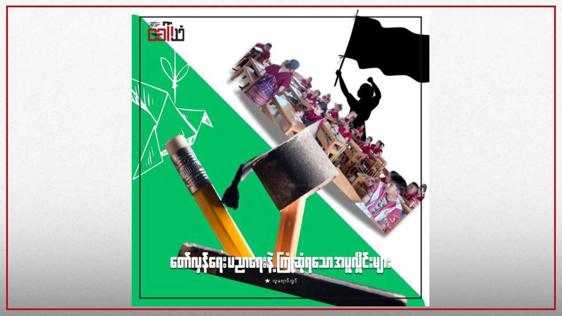အစပိုင်းကာလတွေမှာ တော်လှန်ရေးကာလ ကျောင်းဖွင့်နိုင်ဖို့ကို ကျနော်တို့ရဲဘော်တွေ အများကြီး ကြိုးစားခဲ့ကြရတယ်။ ဘာကြောင့်လဲဆိုတော့ ပြည်သူလူထုက ကြောက်ကြတယ်။ ကျောင်းတွေကို လေကြောင်းကနေ ဗုံးကြဲမှာ၊ နောက်ပြီးတော့ ကျောင်းဖွင့်လိုက်ရင် တော်လှန်ရေးကို လုံးလုံးထောက်ခံသလိုဖြစ်ပြီး ရန်သူက အညှိုးထားမှာ စတာတွေကြောင့်ပဲ။ အဲတော့ ကျနော်တို့က ရပ်ရွာတွေ ကျောင်းဖွင့်ရေးဆိုပြီး ဟောပြောပွဲတွေ လုပ်ကြရတယ်။ ဆရာ ဆရာမတွေ ရှာပေးကြရတယ်။ လိုအပ်တဲ့ စာရွက်စာတမ်းကအစ တက်ကြွစွာ ရှေ့ကလုပ်ပြတော့မှ လူထုက ပါလာကြတယ်။ စာသင်ကျောင်းမှာ မဖွင့်နိုင်ရင်တောင် Home Based အနေနဲ့ ဖွင့်နိုင်ဖို့ ကြိုးစားကြရတယ်။ ကျောင်းမှာ ဗုံးခိုကျင်းတူးဖို့ကစလို့ စာသင်ဖို့အဆုံး ရဲဘော်တွေရဲ့အားကို သုံးကြရတယ်။