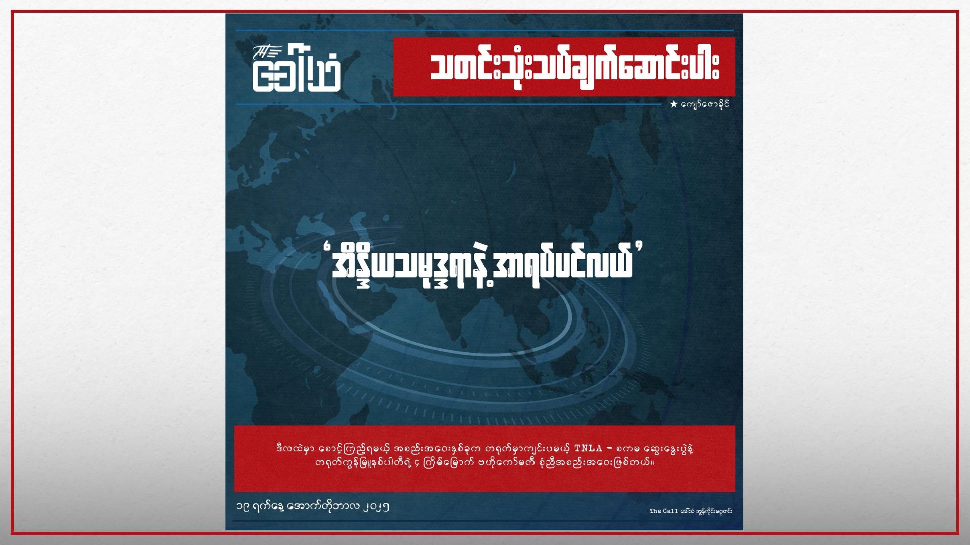 ဒီလထဲမှာ စောင့်ကြည့်ရမယ့် အစည်းအဝေးနှစ်ခုက တရုတ်မှာကျင်းပမယ့် TNLA – စကမ ဆွေးနွေးပွဲနဲ့ တရုတ်ကွန်မြူနစ်ပါတီရဲ့ ၄ ကြိမ်မြောက် ဗဟိုကော်မတီ စုံညီအစည်းအဝေးဖြစ်တယ်။