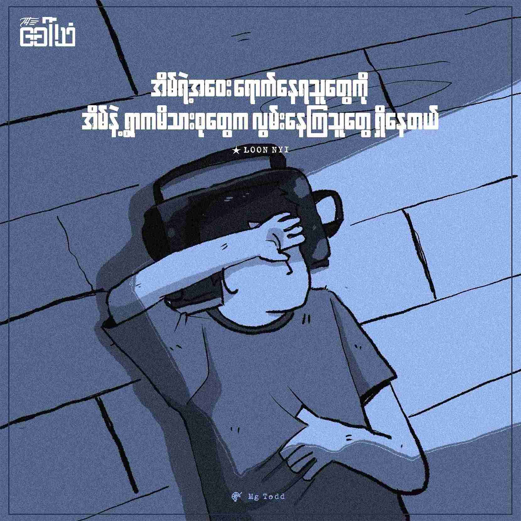 ဒီညမှာတော့ အိပ်ယာထက်က အဝတ်တွေစုပြီး ပုဆိုးကလေးနဲ့ ထုပ်ထားတဲ့ ခေါင်းအုံးကလေးမှာ ကျနော့် မျက်ရည်တွေ စိုနေမလား။ ဘဝတူဒဏ်ရာတွေနဲ့ အိမ်လွမ်းသူတွေ ရှိနေမလား။ အခက်အခဲတွေများပြားလာတဲ့ တော်လှန်လှိုင်းလုံးတွေကြားမှာ ဆက်လက် ကူးခတ်လို့ လူးလွန့်လို့ နေမလား။ ဒါပေမယ့် မနက်ဖြန်များရဲ့အနာဂတ်များလှပဖို့အတွက် ကျနော်တို့အိမ်လွမ်းသူတွေရဲ့ အိမ်ပြန်ချိန်တွေနီးစပ်ဖို့ ကျနော်တို့ ဆက်လက် ကြိုးစားကြပါစို့လေ။ ။